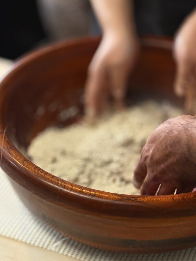 参加者は先生の指導の元捏ねる、カット等の作業を共同で行いました。