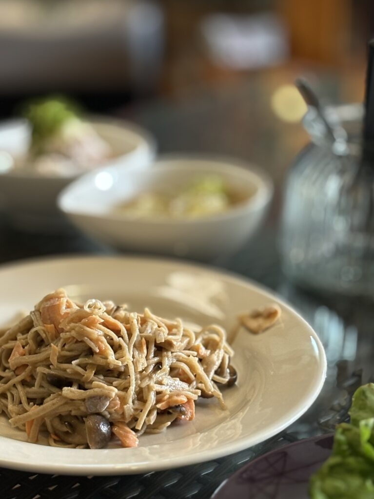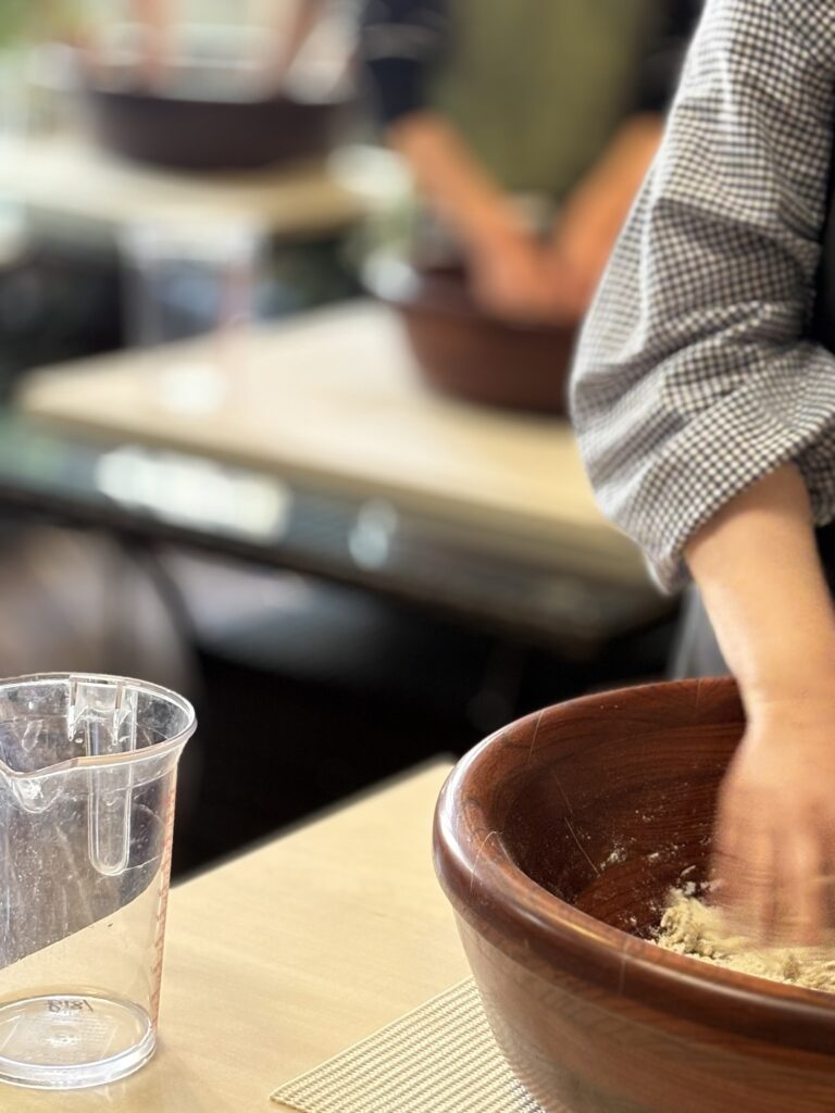 作業の後は『生蕎麦パスタ』作りに挑戦です。